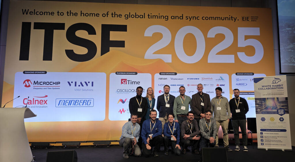 Many members of the White Rabbit Collaboration get together at ITSF in Prague, with different talks, posters and booths showcasing White Rabbit technology and applications.